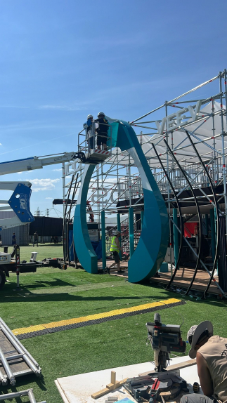 Producción y montaje de la puerta de Iqos - Mad Cool agencia Dnoise y su buen saber hacer.